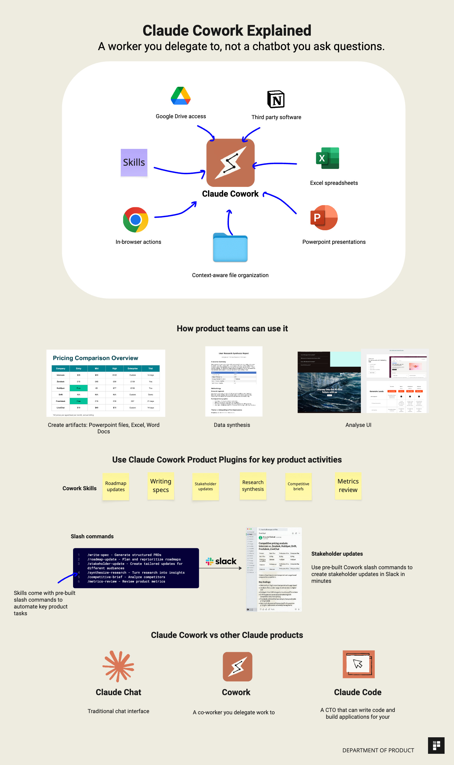 Build strategy decks, analyze UI, craft tailored stakeholder updates with plugins. An in-depth but simple guide to Claude Cowork and the essentials worth knowing about. Knowledge Series #99