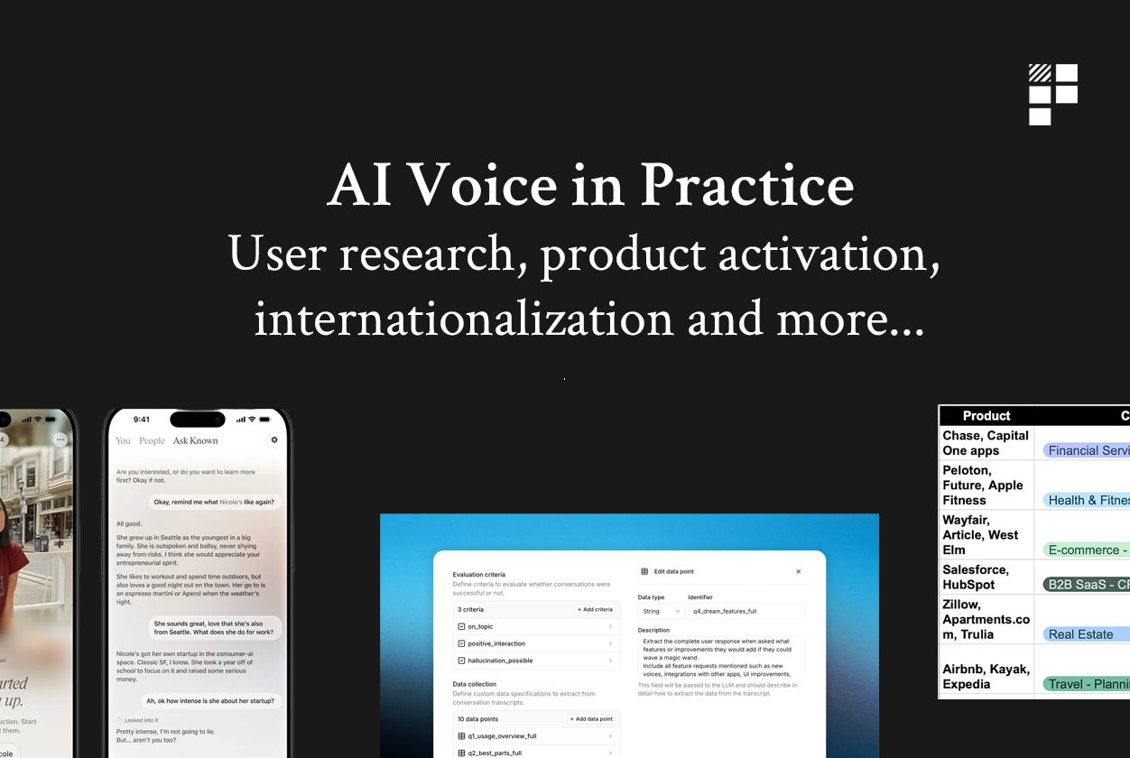 AI Voice in Practice: How voice AI is transforming product activation flows, demos, user research, internationalization and more. Examples from world leading companies.